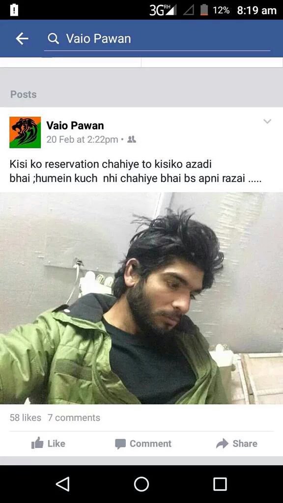The post, written by Vishnu Som, did not miss any chance in using a martyred solider, putting words and thoughts into his mouth, to make a political point. Som claimed that, based on the late Captain’s facebook post, one could clearly say that “the debate around ‘azadi’ speeches and sedition didn’t really bother him“. What was the FB post? This: