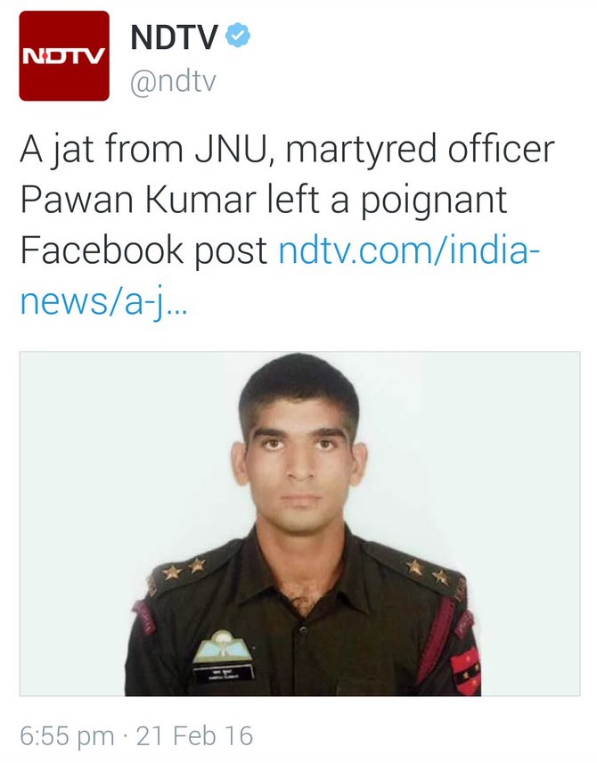 Sandipan Sharma now, has followed in the foot-steps of Vishnu Som. Going one step ahead, he claims that Captain Pawan Kumar “had studied at JNU”.