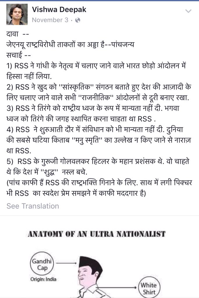 In fact, even while serving Zee News, Vishwa Deepak was very vocal against RSS and Modi.