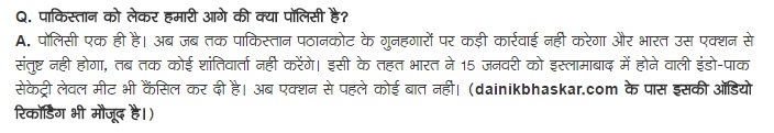 2. Dainik Bhaskar: NSA Ajit Doval says in an interview: India has cancelled the 15 January Indo-Pak Foreign Secretary level talks