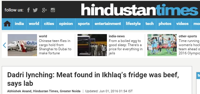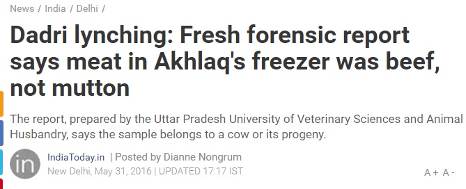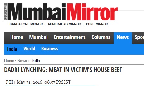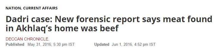Recently we read reports in all media that contrary to the initial “prima facie” reports, the meat found at Dadri was indeed beef or rather more specifically: “of cow or its progeny”. While the nature of the meat does not take anything away from the fact that a very gruesome and vile crime occurred in Dadri, the reporting of the latest twist indeed warrants scrutiny.