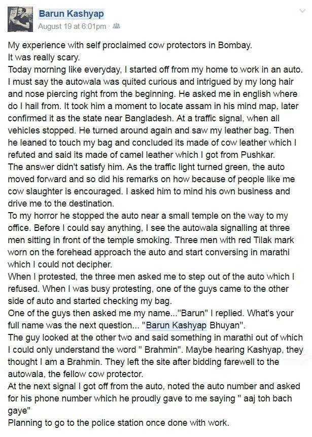 But instead of providing those details, Barun deleted the Facebook post itself. Though by then, the media had made his story viral. Even the Chief Minister of Maharashtra was made aware of the case and he promised police action to punish the culprits i.e. the gau-rakshaks.