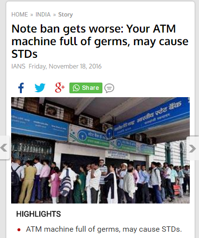 When they see something that sounds too strange to be true, you would expect them to crosscheck with some experts. But, they see STD and ATM in one report and were more than happy to run them with alarmist headlines, especially at a time when people are thronging ATMs, with some even linking it to the “note ban”.