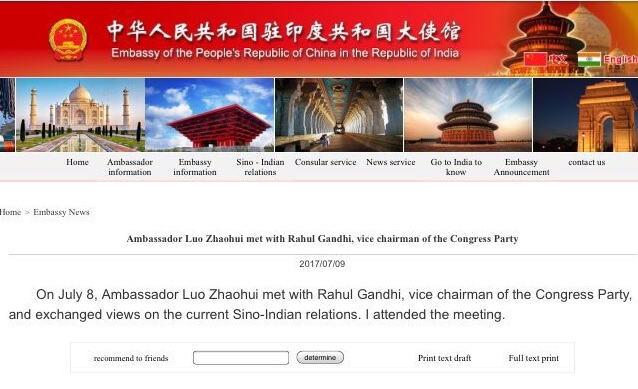 But the party was caught lying as the Chinese embassy website had issued an official statement confirming the meeting between the Congress vice president and the Chinese envoy.