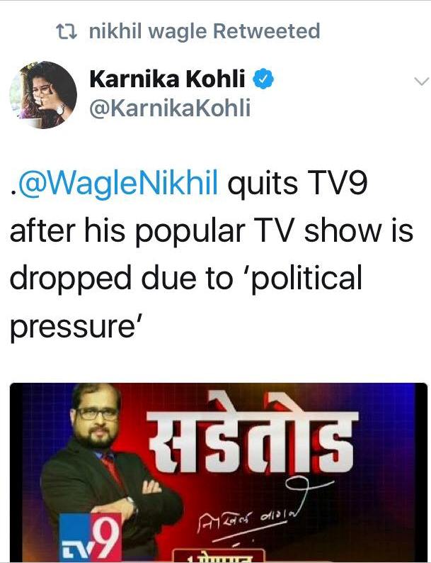 Just heard: @waglenikhil prime time show, the highest viewed on Marathi news tv, stopped on TV 9 overnight! Why?