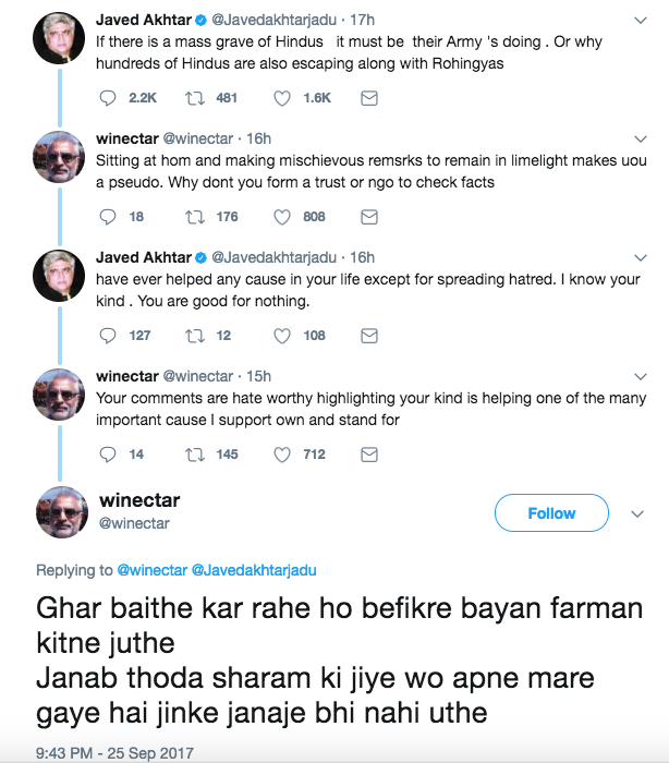 — Javed Akhtar (@Javedakhtarjadu) September 25, 2017