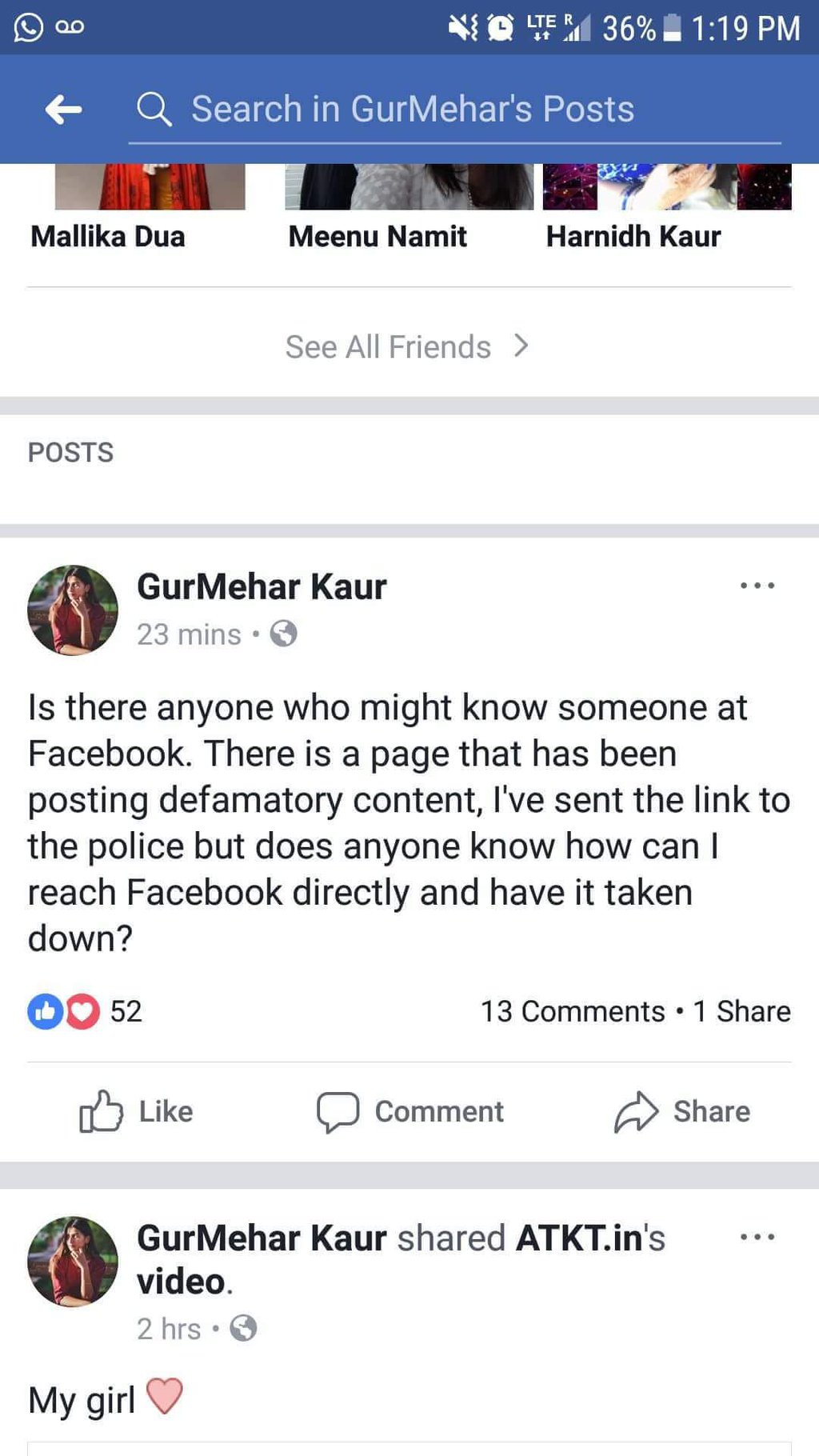 The memes were essentially a criticism of activism of Gurmehar Kaur. We at OpIndia.com too had criticized the misplaced idealism and partisan activism of Kaur back in March (though our focus was not on feminism or such issues). But since memes tend to go viral more than articles – just like videos of someone holding placards – perhaps Gurmehar thought it was time to act and nix the criticism.