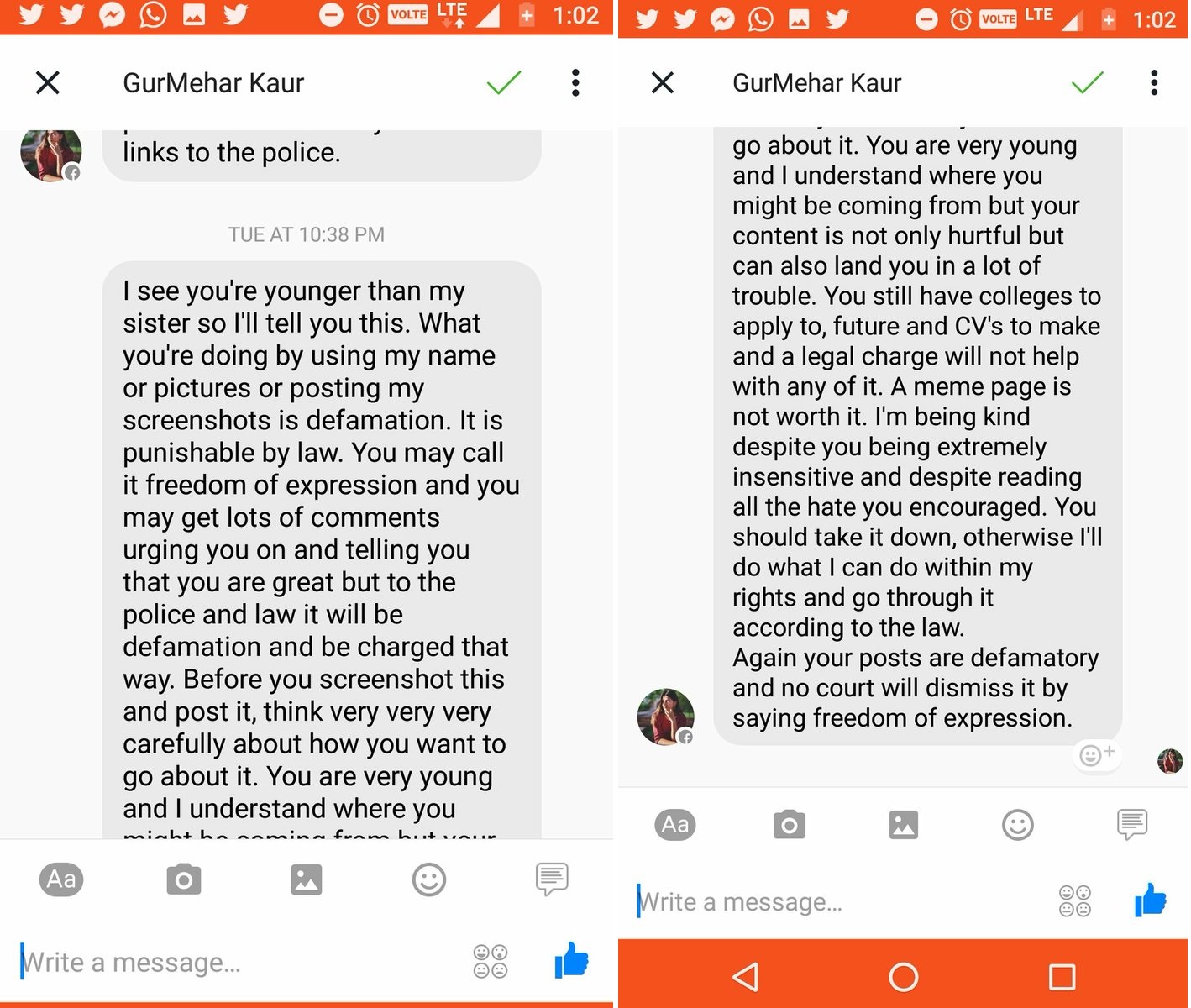 Like a true left-leaning activist, she allegedly decided to attack the career and livelihood prospects of the boys. In a screenshot of messages allegedly sent by her, she is seen warning the boys with threats of defamation case, police action, and a destroyed career where they may not get admissions in good colleges and may even fail to get jobs: