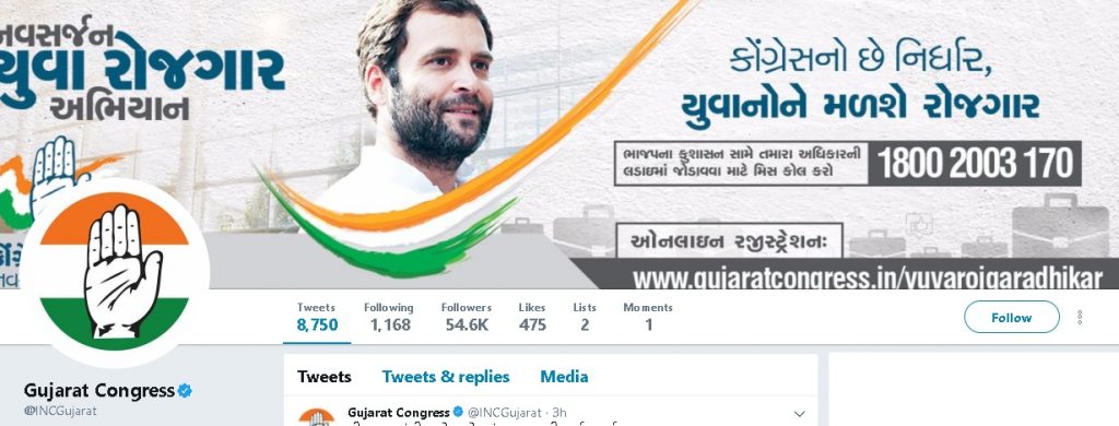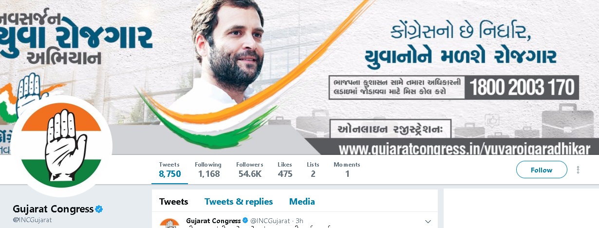 GujaratCongress.in is the official site of Gujarat Congress. On the verified Twitter page of Gujarat Congress, the link for online registration is a page on GujaratCongress.in.