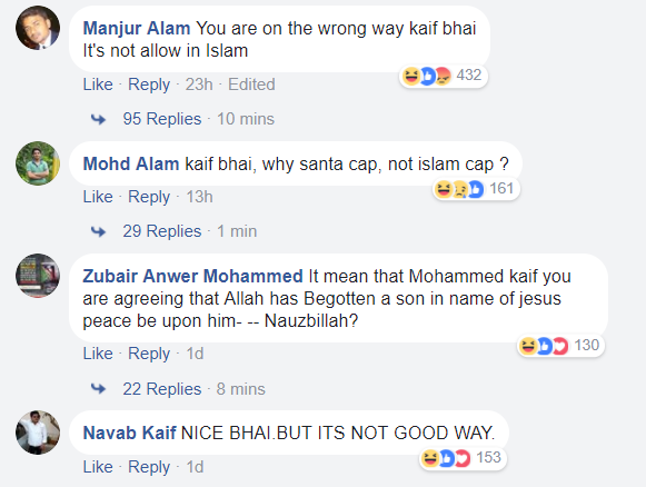 As seen above, one user questioned why Kaif was wearing a Santa cap and not a skull-cap and another told him that celebrating Christmas is not allowed in Islam.