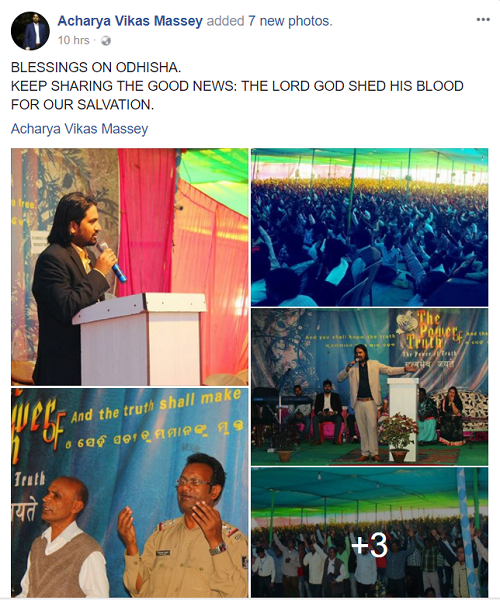 Scrolling through his Facebook page, one finds that he regularly conducts Evangelism events across India: