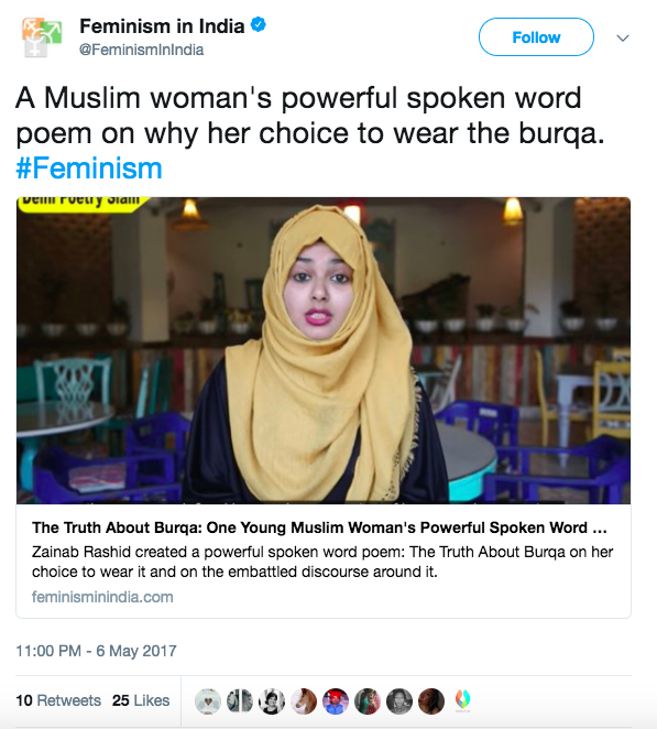 The website Feminism in India too endorses burqa as a ‘choice’: