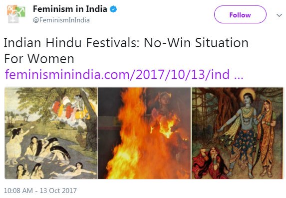 This is not for the first time this website has portrayed Hindu festivals and Hinduism as inherently misogynist: