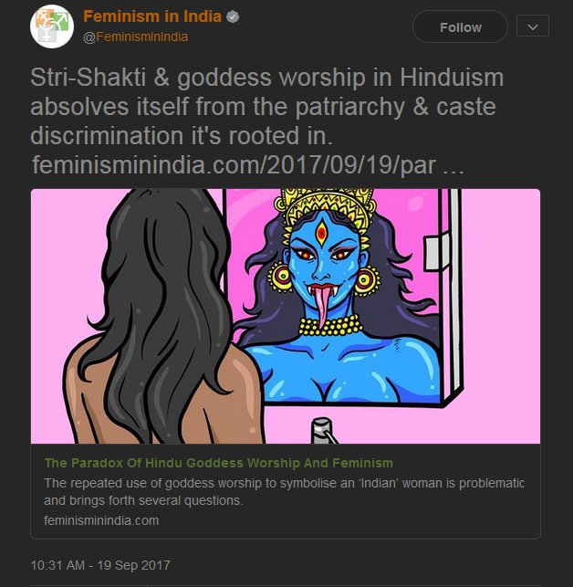 While Islam is hailed as progressive and champion of female sexuality, not a single article has been written on this website that shows Hindus and Hinduism in harmony with feminists themes. The blatant bias and double standards hint at an agenda, which they have not been pretty smart to hide.