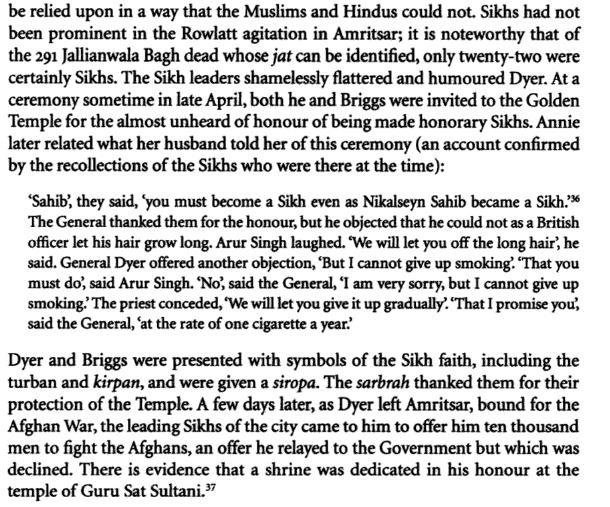 The Governor of Punjab Micheal O’Dwyer supported Dyer’s actions. O’Dwyer was dismissed for his actions in Punjab in the subsequent year. In spite of this, both O’Dwyer and General Dyer had Indian and English admirers. They collected money worth 26,000 euros and presented it to Dyer. General Dyer was made an honorary Sikh as per the book ‘The Butcher of Amritsar: General Reginald Dyer’ by Nigel Collet.