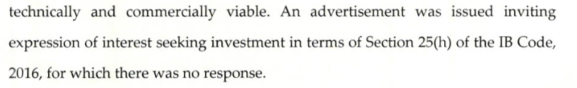 In fact, an excerpt from the NCLT order mentions that advertisement was issued inviting expression of interesting seeking investment for which there was no response, owing to which, the NCLT allowed the promoters to bid.