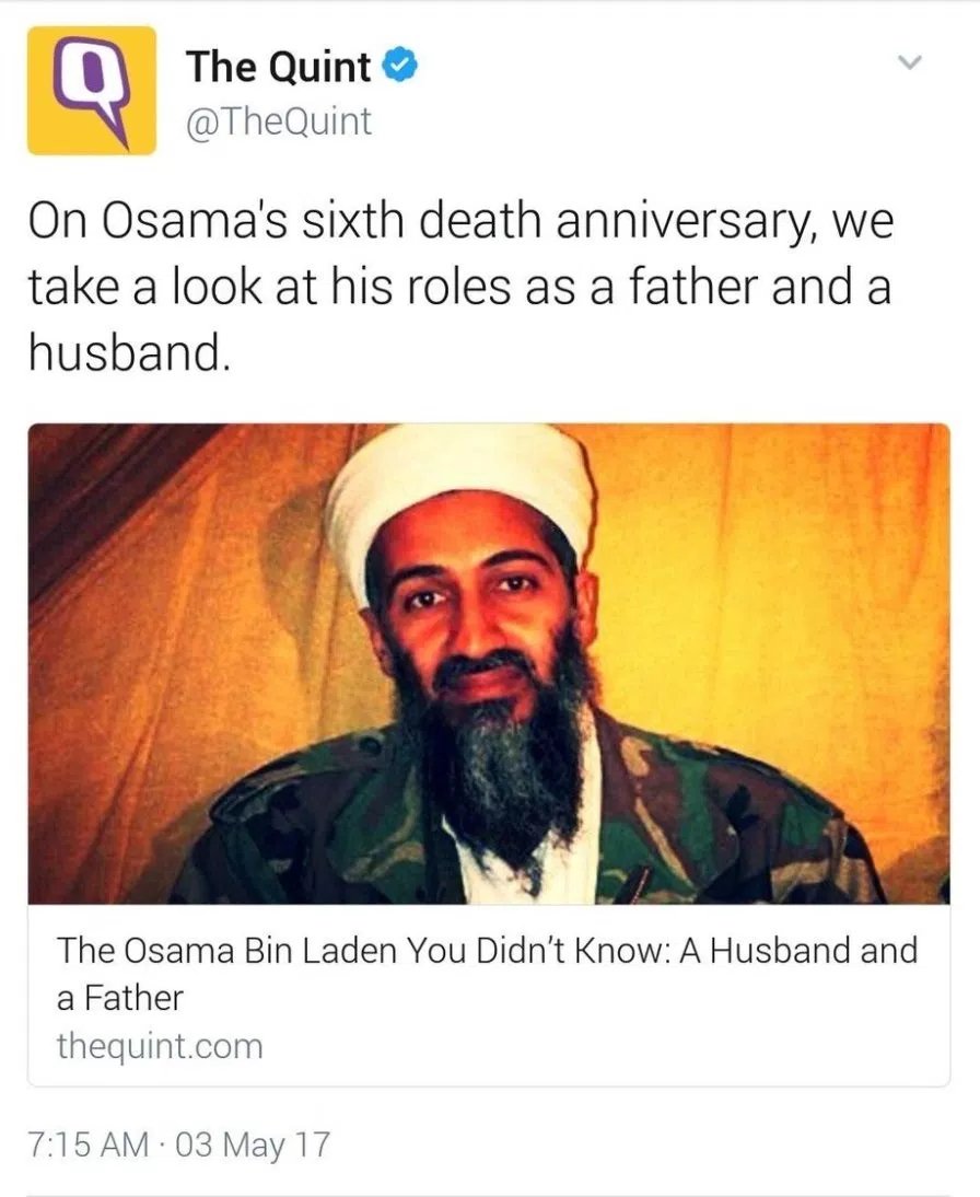 This is not the first time The Quint has tried to humanize terrorists. Earlier, too, The Quint had tried to show how Osama was a caring father and husband.