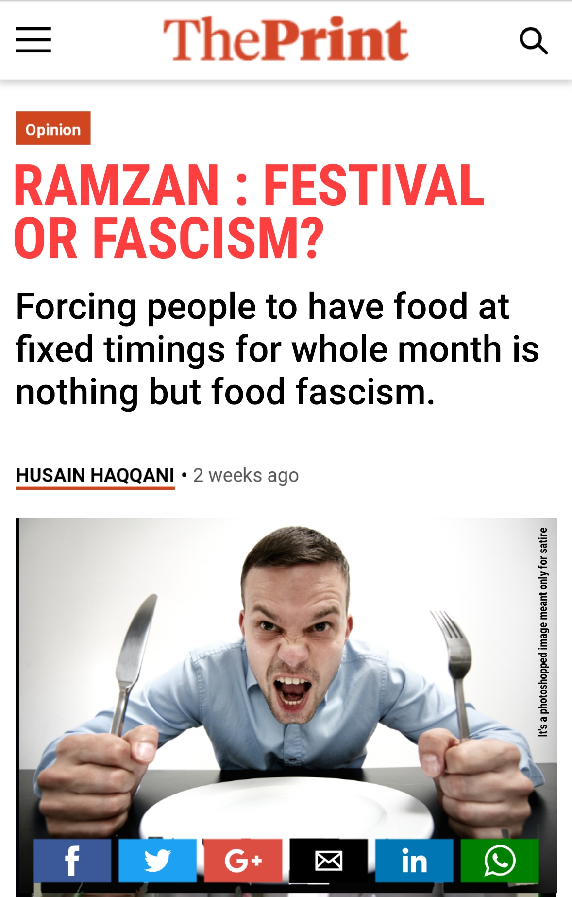 The holy month of Ramzan will get over next week. For the entire month, you probably didn’t read any preachy or offensive article about Ramzan in the ‘liberal’ media or witnessed any offensive act by some celebrities, who are otherwise the quickest to come up with such quips during a Hindu festival.