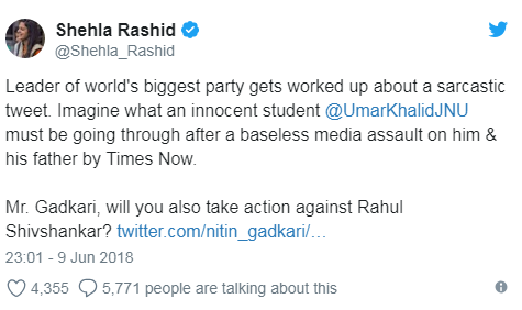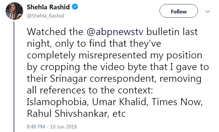 — Shehla Rashid (@Shehla_Rashid) June 9, 2018