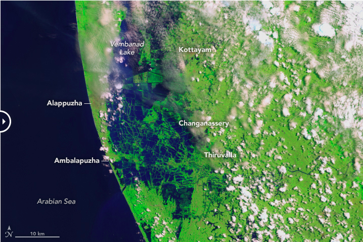 The images released by NASA show a comparative effect of the devastating floods in Kerala.