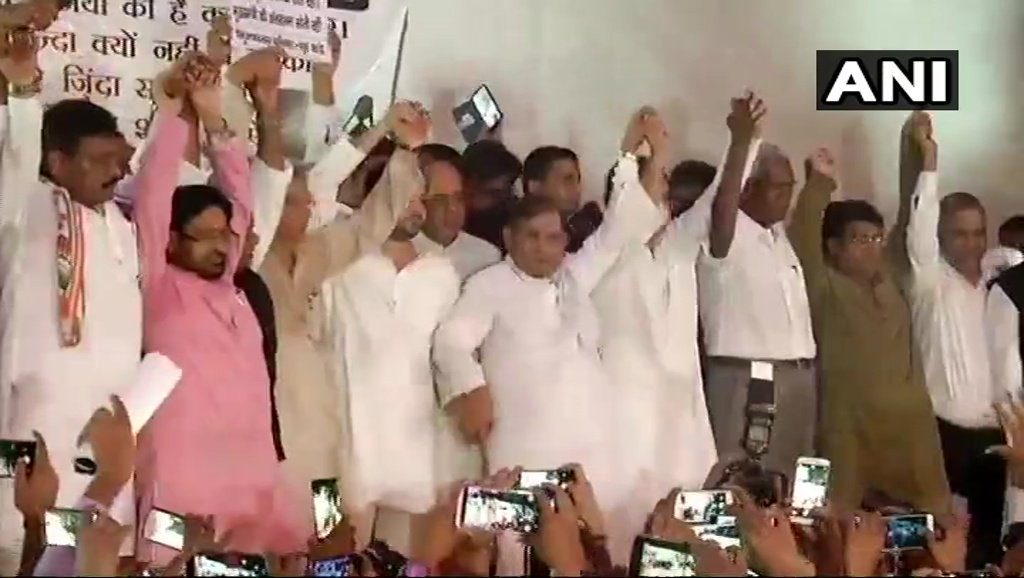 That is not all. At one point, the politicians gathered together and held hands and raised them in the air as if they are using the platform as show of strength of ‘united opposition’