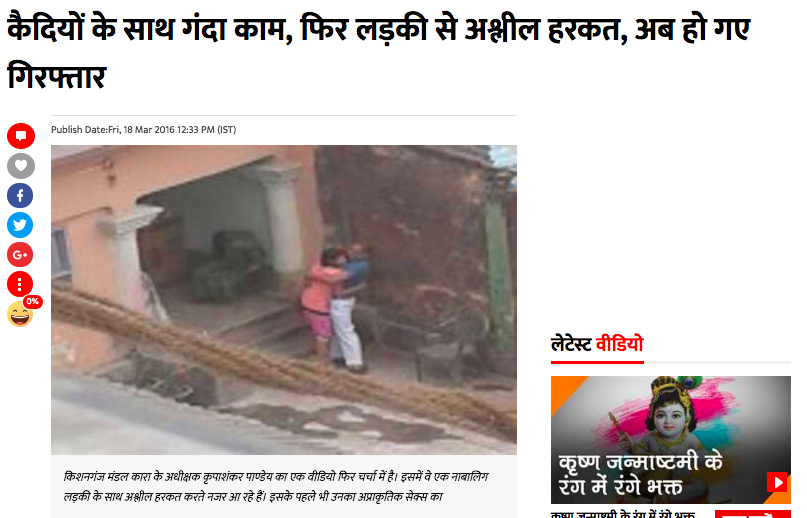 However, the truth is far from what is written in the above two portals. In reality, the screengrab which is peddled as a BJP leader getting physical with an ABVP student leader in a secluded temple is actually of a jail superintendent of Kishanganj jail who was caught sexually molesting a minor girl in the jail premises in 2016.