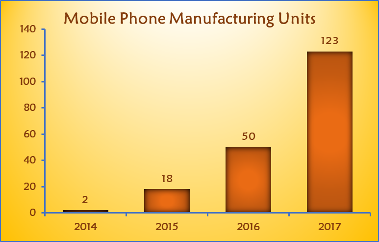 These are just a few examples of phone manufacturing plants in India. In the year 2014, there were just two mobile phone manufacturing units in India, by the year 2017, India has become home to 123 factories making mobile phones.