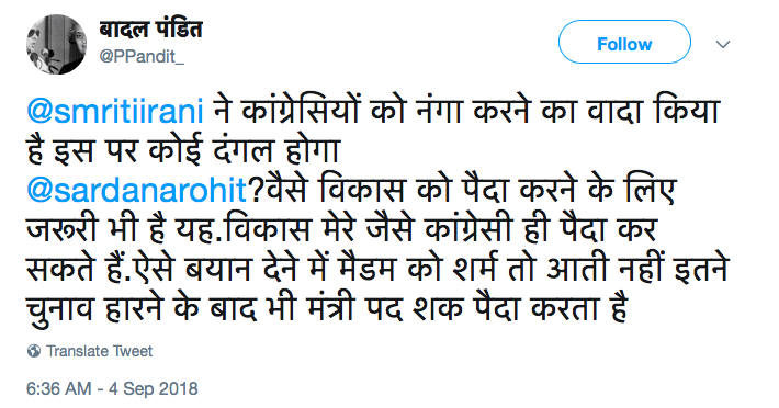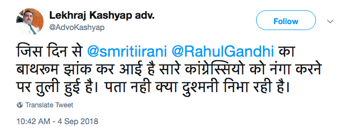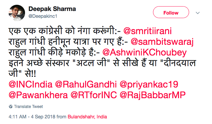 Bahot A6e Se Nanga Kar Dia Aapne.#Sanskar#AukatApniApni#Indian#ItalyValeSanskariLogA6eAapSeTo#Shame#ElectionToJeetoPehle@INCIndia pic.twitter.com/lgvJUPybTl— Maharsh Pandit (@lankapati0ravan) September 4, 2018