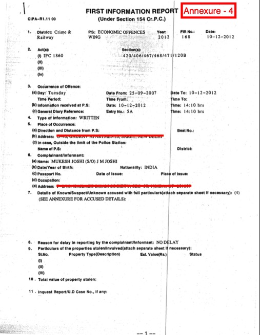 In the year 2012, Joshi took the matter to Company Law Board (CLB). In 2012 itself, Joshi also filed an FIR against Upadhyay in the Economic Offences Wing.