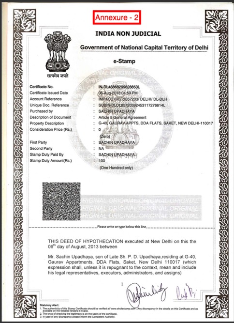 Ideally, Sachin Upadhyay and his wife Nazia should have had no right to sell or mortgage any asset of the company. But, while Upadhyay kept delaying the agreement with Joshi, he hypothecated the property of the company SM Hospitality Pvt. Ltd. with a public financial institution like Punjab National Bank. By hypothecating the said properties, Upadhyay availed loan and credit facility to the tune of Rs. 39 crores from Punjab National Bank and 5.2 crores from other Financial Institutions. He had done exactly the same, with another company of theirs called SM Hospitality Pvt. Ltd.