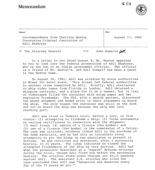 In a memorandum to the Attorney General from John Roberts, the AG’s special assistant, the latter emphasized on the gravity of the charges against Shahryar. He wrote, “Adil was tried in federal court, before a jury, on 5 counts: (1) attempting to firebomb a ship; (2) false statements on various certificates in connection with the shipment; (3) mail fraud; (4) making of a firearm (the bombs); and (5) the use of a firearm (the bombs) in the commission of a felony. The case was airtight: evidence linked Adil to the purchase of the bomb materials, and he had only an incredible story attempting to pin the blame on two associates to present in defence. He was convicted and sentenced, after a sentencing hearing, to 35 years.