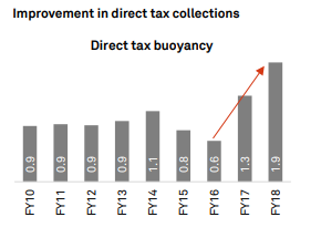 - from FY08 to FY16, direct tax buoyancy had hovered between 0.5 and 1.1