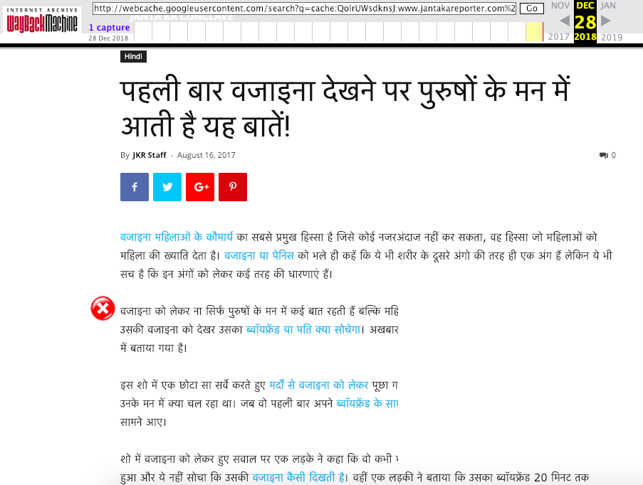 The August 2017 article which described what men think when they “first see a v*gina” was deleted from Janta ka Reporter. However, as is often said, what is on the internet can seldom be erased completely. Here is a snapshot of its cached version.