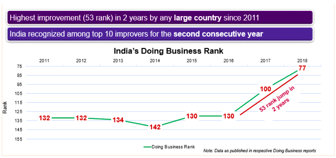 The EODB ranking has given India a considerable edge in 2018. India bagged several accolades like best performance since inception of doing business report, best improver in the world in terms of improvement in rank. India also became the only country in South Asia and BRICS to feature amongst most improved nations.
