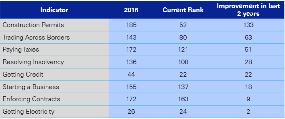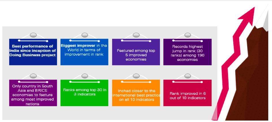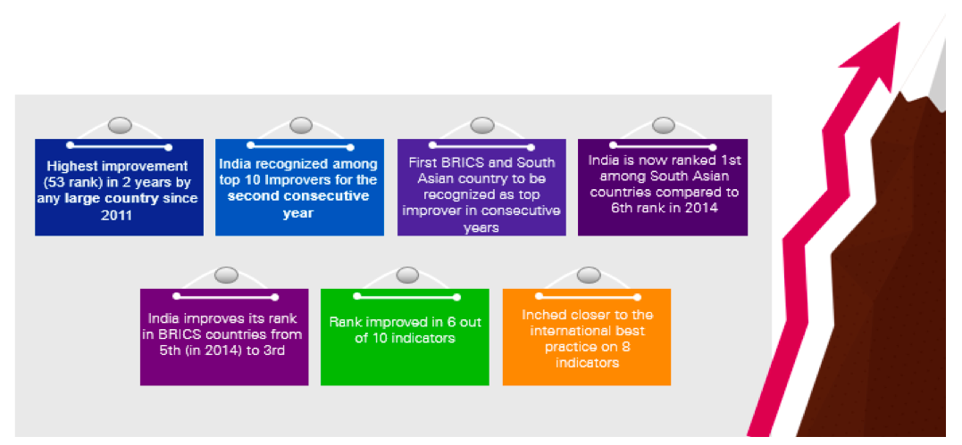 India’s performance can be credited to positive changes in construction permits, trading across borders, paying taxes, resolving insolvency, enforcing contracts etc. There are several indicators in which India has improved remarkably well.