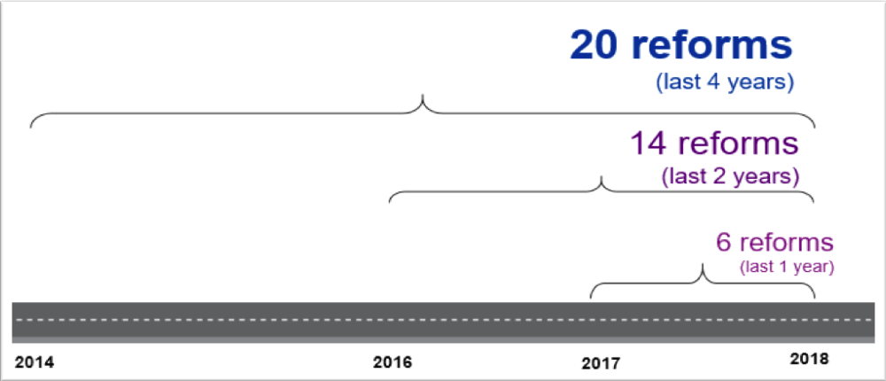 Under the Modi government, 20 reforms have occurred since 2014, 14 in the last two years and 6 in last year alone.