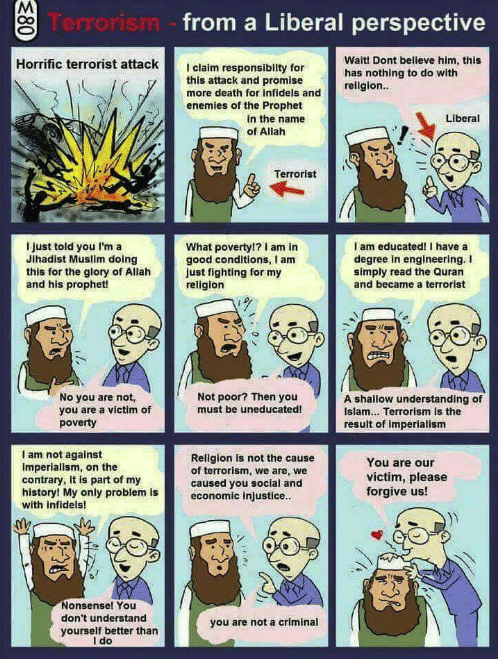 Meanwhile, here is a cartoon strip which shows terrorism from a liberal perspective.