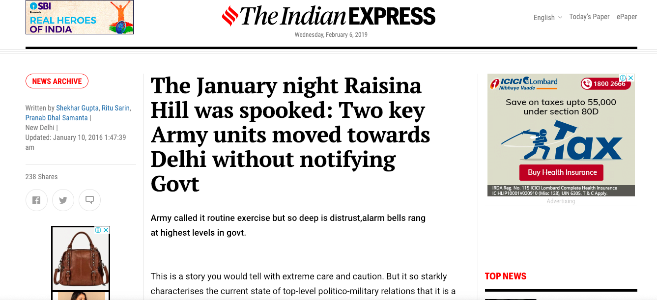 Planting stories is as old as journalism. However, a senior journalist like Gupta should have known better when such a ‘plant’ involves the Indian Army. OpIndia reached out to Gupta for his comment on the allegations on such ‘leaked’ story on the army coup which he had carried on the front page as an editor of one of India’s leading national daily. Gupta has not replied by the time the report is published.