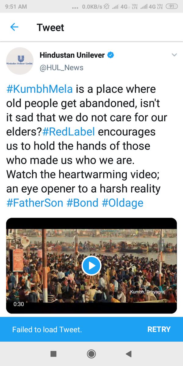 HUL which owns dozens of consumer brands through which it is notorious for making preachy advertisements. While HUL has deleted the original Hinduphobic tweet, the text towards the end which patronises and reduces the Kumbh to a place where old parents are abandoned still remains.
