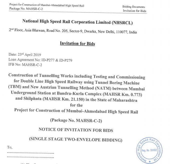 The tender was issued for the construction of the tunnel as well as testing and commissioning for double line high-speed railway using tunnel boring machine (TBM) and new Austrian tunnelling method (NATM) for the project. Bids can be submitted at the NHSRCL office from 26th April to 22nd August this year, and the Technical Bid will be opened on 23rd August in the presence of representatives of the bidders. A pre-bid meeting has also be organised on 24th May for the eligible bidders/