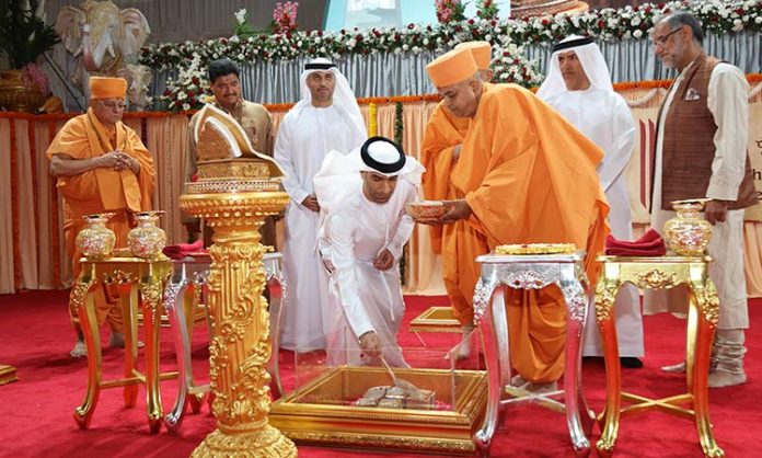 quoted “On behalf of 130 crore Indians, it is my privilege to convey our greetings to my dear friend and the Crown Prince of Abu Dhabi, His Highness Sheikh Mohammed bin Zayed Al Nahyan. When complete, this temple will symbolise the universal human values and spiritual ethos that form a shared heritage of both India and the UAE”.