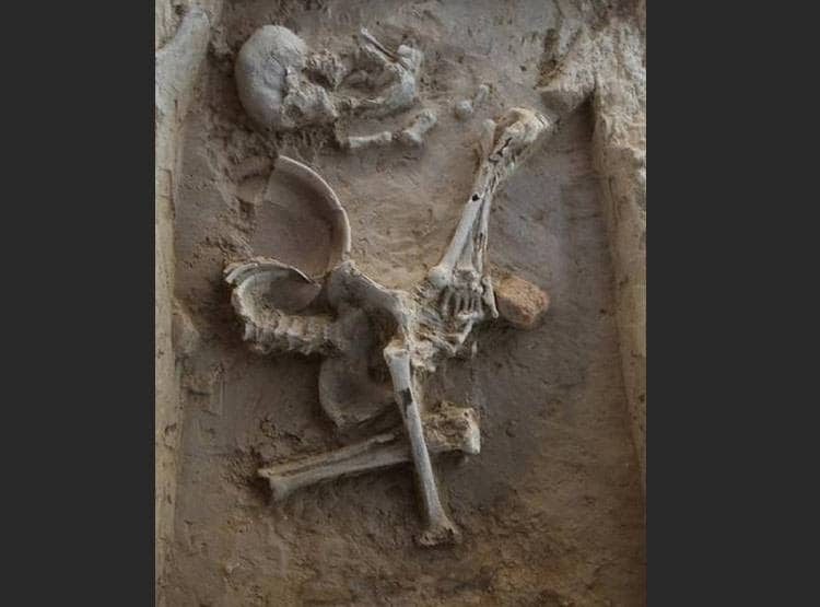 The excavation, which restarted in January, is being done at two different locations. “In the first area, two burial pits and a sacred chamber of burnt brick were discovered along with burial goods. One wooden ‘legged coffin’ decorated with steatite inlays having extended skeleton of a female was excavated. This burial pit contains evidence of decomposed bow, bone points, armlet of semiprecious stones, gold bead and pottery systematically arranged towards north and eastern sides of the coffin,” said an ASI statement.