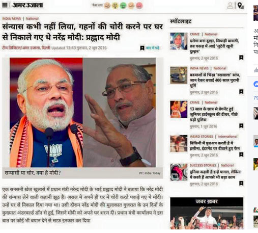 In fact, the contents of the fake news clips are sourced from another fake news that had surfaced in 2016. Then, a similar fake news clip, attributed to Hindi daily Amar Ujala, had been circulated claiming that PM Modi’s eldest brother, Prahladbhai Modi has stated those things about their family and their father’s death.