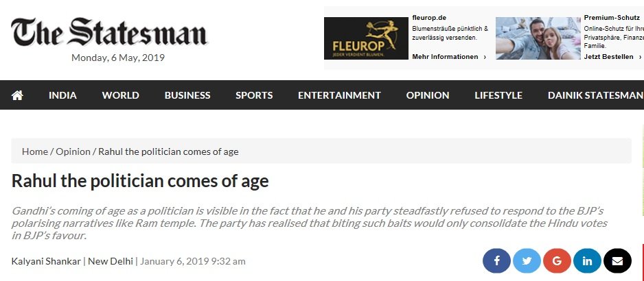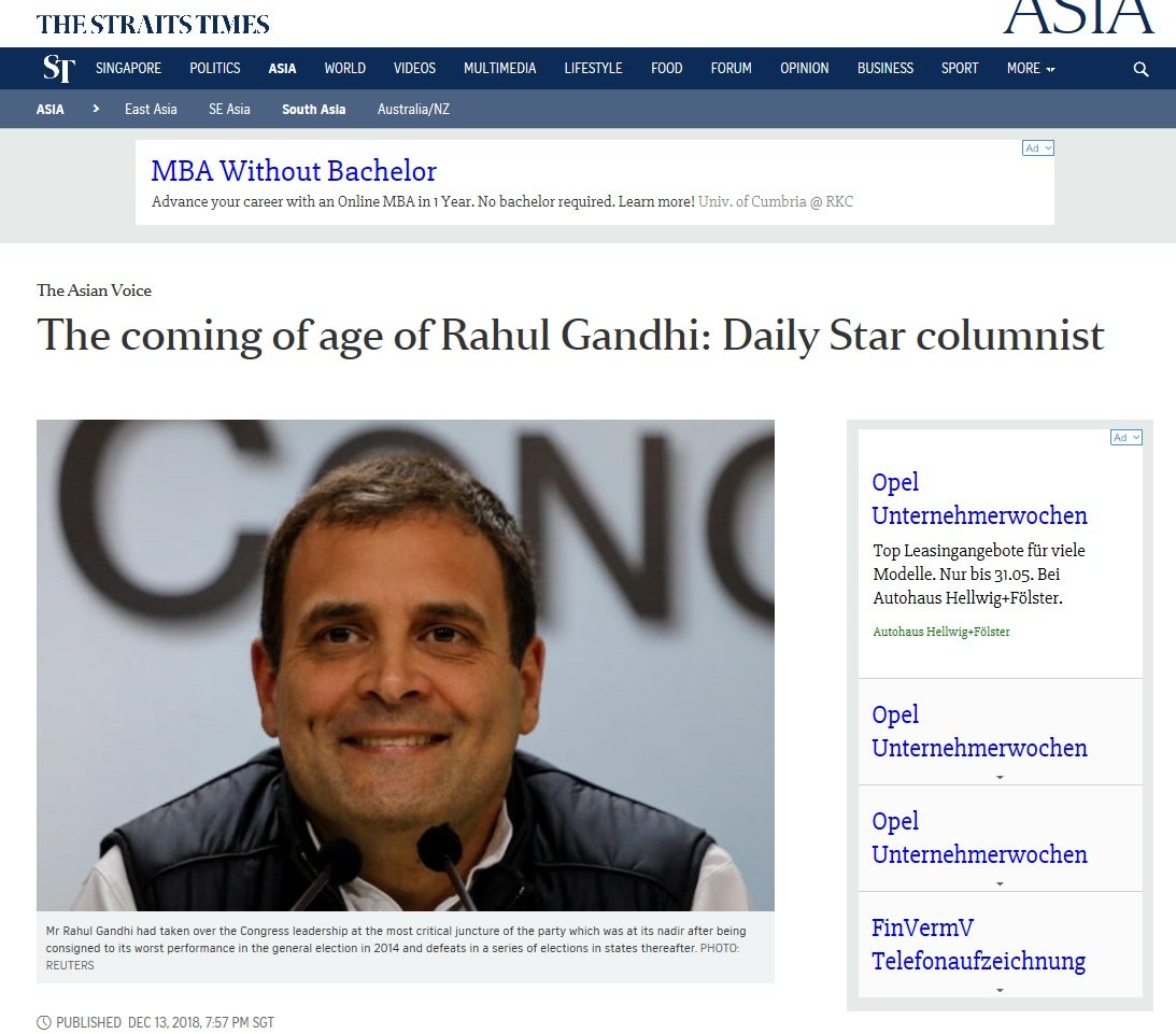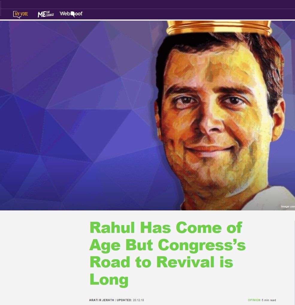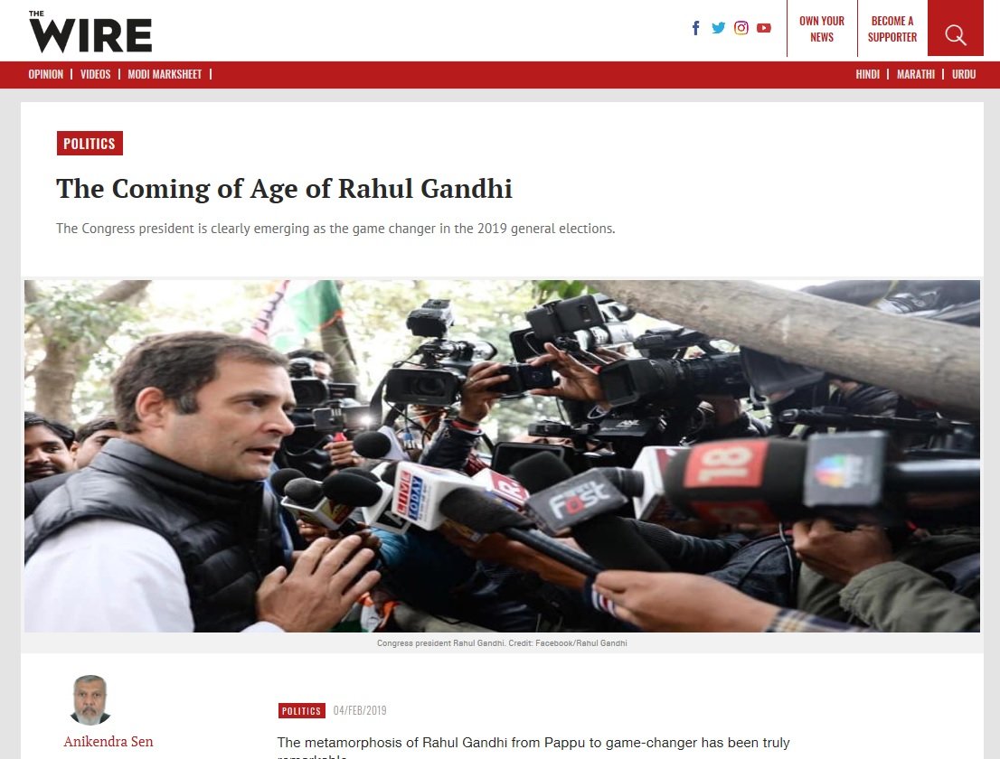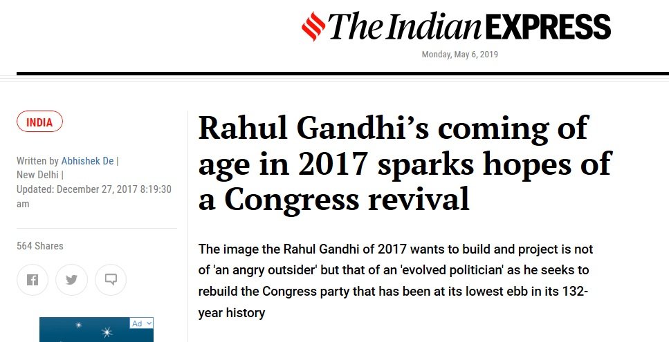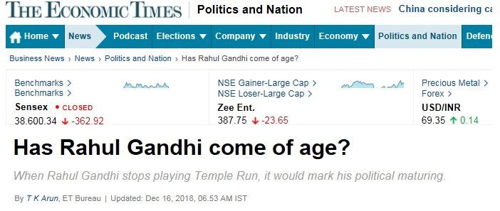 With the 2019 elections around the corner and wins in Madhya Pradesh, Rajasthan and Chattisgarh under his belt – there would be no stopping Rahul. Or his sycophants in the media. The “Coming of Age” franchise has some content for support now. All – big and small, national and international – all agencies were activated to give the Prince one final push.