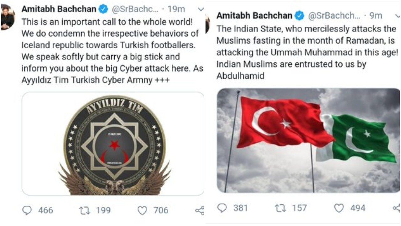 Ayyildiz Tim also tweeted multiple messages, including an anti-India post, from Amitabh Bachchan’s Twitter account. “This is an important call to the whole world! We do condemn the irrespective behaviours of Iceland republic towards Turkish footballers. We speak softly but carry a big stick and inform you about the big Cyber attack here. As Ayyıldız Tim Turkish Cyber Armny +++”.