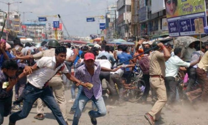 Violent clashes erupted once again in Bhatpara area in North 24 Parganas district of West Bengal following the visit of a three-member delegation of the BJP to the area. Slogans condemning the West Bengal police were raised during the visit of the delegation. According to reports, bombs were also hurled after which the police charged batons on the locals to stop the violence.