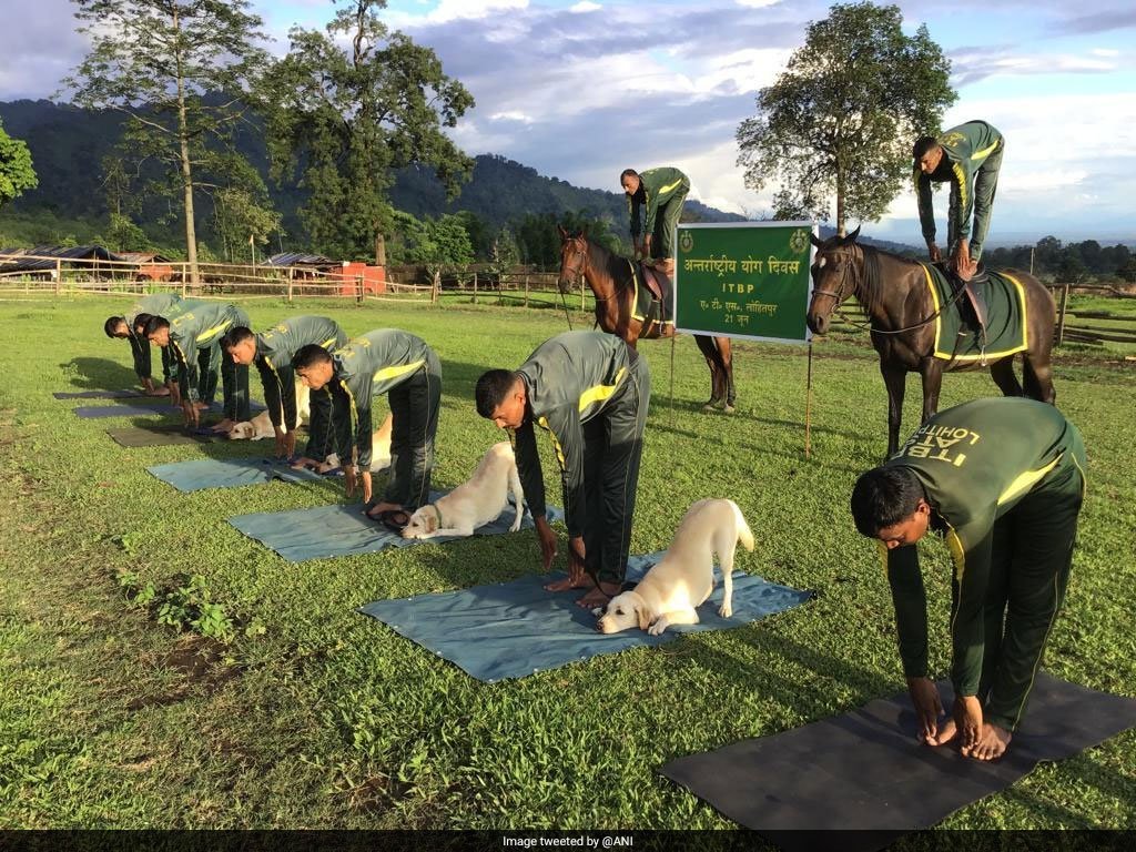 With the first light in the dawn-lit mountains, the Indo-Tibetan Border Police (ITBP) troops celebrated Yoga Day with their darling dogs and horses. ITBP troops of ATS Lohitpur are one of the first in the country to set the ball rolling on International Yoga Day.