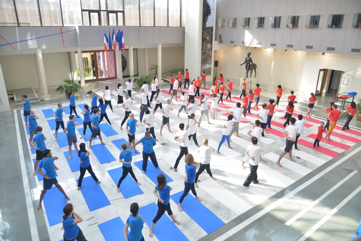 More than 80 people collected at the French Embassy to celebrate Yoga. More than 25 lakh people are fond of yoga in France which makes the country a European hub for yoga.