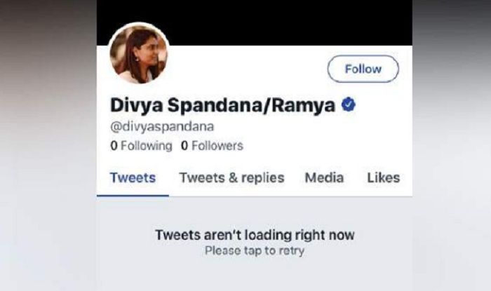 The Kannada actress turned politician, also known by her screen name Ramya, seems to have deactivated her Twitter account. Spandana was handpicked by Rahul Gandhi to handle Congress’ social and digital media.
