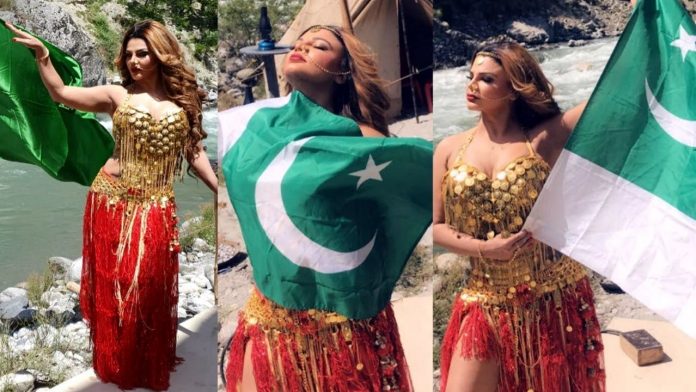 Rakhi Sawant is playing a role of a Pakistani dancer in her upcoming film ‘Dhara 370’ where she saves Kashmiri youth from becoming terrorists. She had earlier posted pictures on Instagram where she was draped in Pakistani flags. However, Pakistanis had then abused Rakhi Sawant for posing with the Pakistan flags. She appealed to people that this is just a role she is playing and that they should not eat her brain for this.